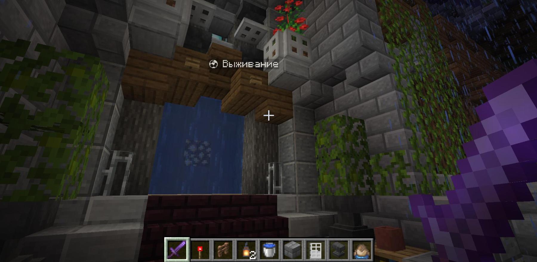 - ❤️ Режим «Выживание» — традиционный Minecraft, но с возможностью исследовать огромный мир, строить базы, добывать ресурсы и сражаться с мобами.