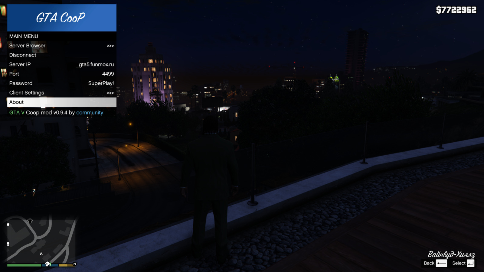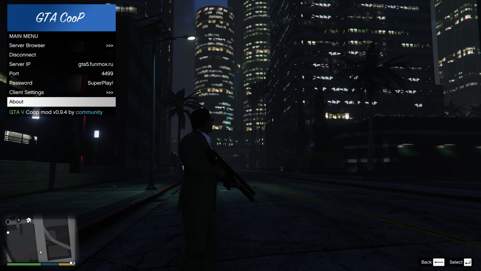• В игре нажмите F9, чтобы открыть меню GTA Coop.